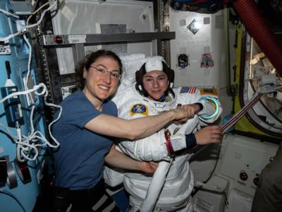 美国宇航局两名女性宇航员(杰西卡·梅尔和克里斯蒂娜·科赫)首次同时进行太空行走...
