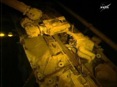 阿卡巴在国际空间站外进行维修任务。休斯敦太空中心...
