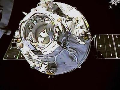 载货太空船载有大量燃料和空间站所需补给物。太空船...