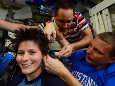 此次公布的视频是国际空间站中来自欧洲太空总署的女宇航员萨曼莎的新年第一次剪发...
