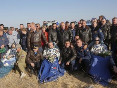 当地时间9月11日,搭载着国际空间站三名宇航员的“联盟TMA-12M”载人飞船在哈萨...