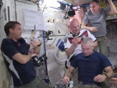 美国队世界杯输球 宇航员在国际空间站内剃光头 (神秘的地球报道)据中国新闻网...