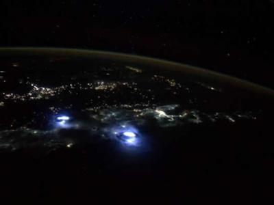 国际空间站宇航员从太空拍摄地球发生雷暴