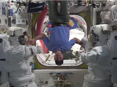 美国宇航员在太空中“倒竖葱”勉励母校毕
