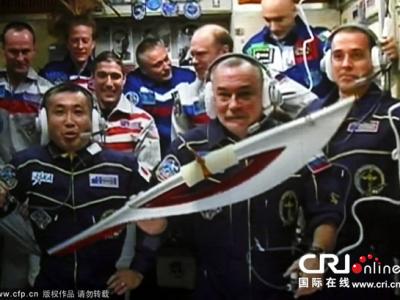 国际空间站宇航员与地面人员视屏通话并展示奥运火炬 (神秘的地球u...