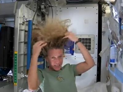 国际空间站女航天员演示在失重环境下洗头发 每天负责许多重要工作的航天员,睡觉...