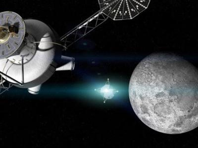 美国宇航局计划在地-月L2上建立空间站。图为登月舱脱离空间站正准备登陆月球(艺...