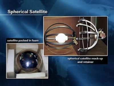 9公斤重的金属球正在准备发射,金属球位于图片右侧 任务控制员告诉宇航员发射...