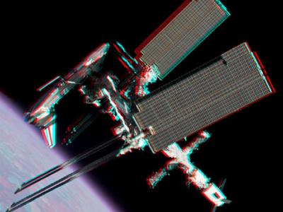 奋进号航天飞机停靠国际空间站的3D图像 意大利宇航员保罗-奈斯波利(Paolo Nes...