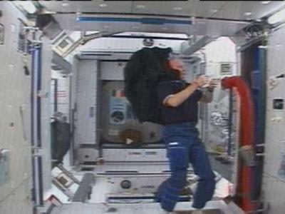 2007年10月31日,在空间站新的“和谐”号节点舱工作的克莱·安德森庆祝万圣节,黑...
