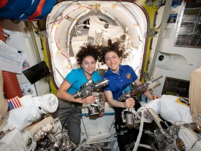 美国航天总署(NASA)航天员洁西卡. 梅尔(左)和克莉丝缇娜. 科赫(右)在国际太...