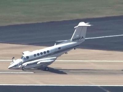 美国小型客机起落架故障 靠机鼻贴地滑行