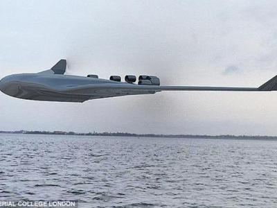 伦敦帝国理工学院设计的巨型水上客机载客量达到2000名,使用了飞翼造型,下机身为...