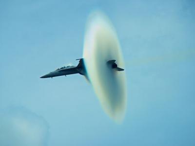 美军F/A 18超级大黄蜂战机冲破音障 战机加速至超音速水平前的情况 F/A 18超...