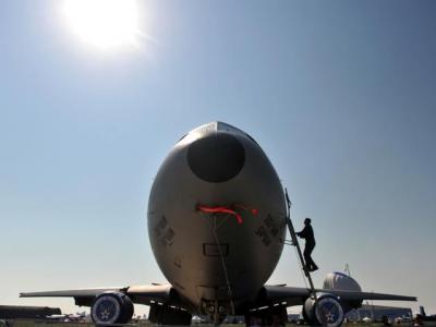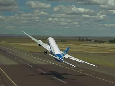 英国范保罗航展上美国波音787-9型客机模仿战斗机进行特技表演 (神秘的...