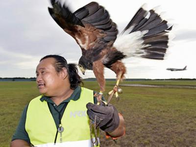 日本成田机场尝试用老鹰威慑驱赶鸟类保卫