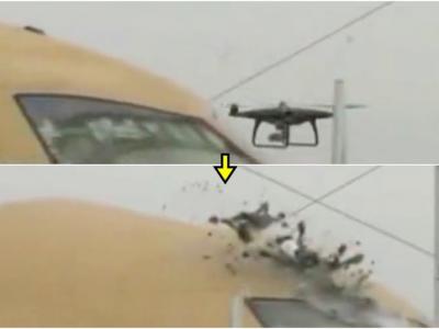 客机高速驶向无人机,将无人机撞至“粉身碎骨”。实验使用的是...
