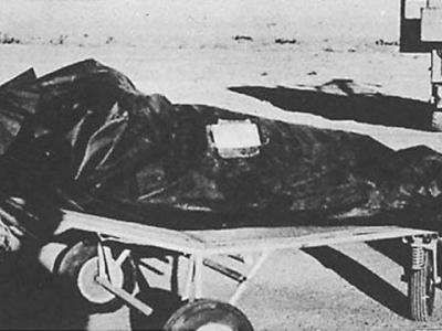 当时拍摄的照片,黑布覆盖着的是美国军方宣称测试用假人中的一个 谷歌制作的纪...