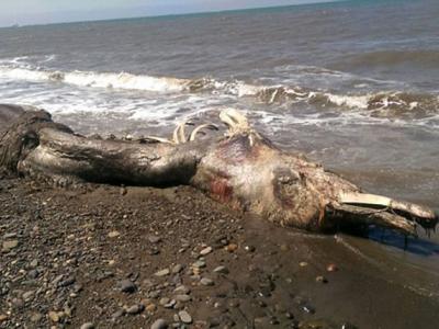 俄罗斯远东库页岛海岸惊现巨形有毛“海怪
