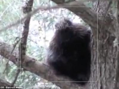 一个美国家庭宣称他们在徒步穿越白雪覆盖的树林发现像猿的神秘怪物静静地蹲在树上...