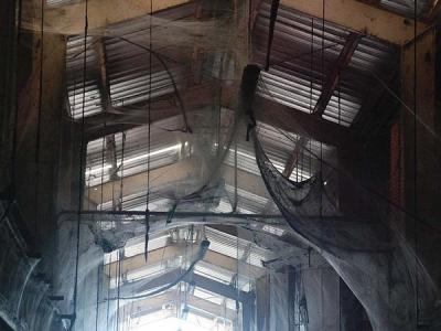 工厂被密密麻麻的蜘蛛网覆盖 每平方米有逾3.5万只蜘蛛居住 蜘蛛群占领整个...