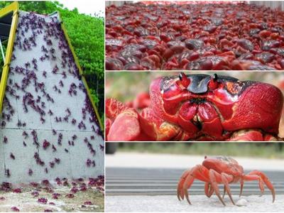 圣诞岛近日出现每年一度的“红潮”。 红螃蟹通过地下隧道,迁徙至海边。 当...