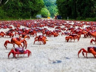 澳大利亚圣诞岛逾120万只红蟹从森林走出
