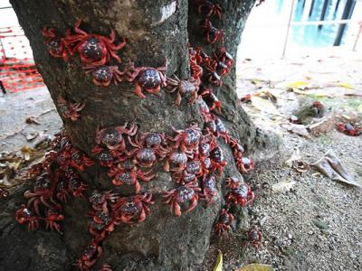 澳大利亚圣诞岛大批成年红蟹迁徙