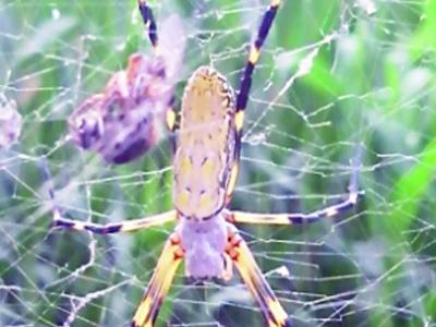 北京房山现巨大蜘蛛——棒络新妇 据北京晨报:晨家住琉璃河的张先生近日在房后发...