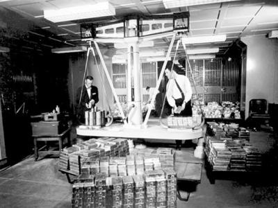 1968年,纽约联邦储备银行的职员在整理联邦德国的金条。 工业大国德国有多达340...