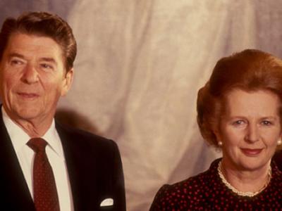 1982年,美国总统里根在访问英国,与时任英国首相撒切尔夫人合影。 1982年5月...