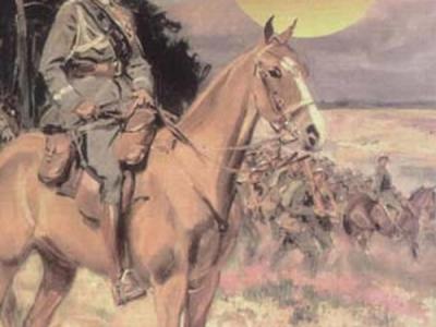 1920年华沙战役中的波兰元帅毕苏斯基,他身后是被他鼓舞起斗志的波兰士兵。元帅本...