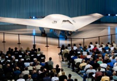 “幻影射线”无人空中系统第一次与员工见面。 波音于10日揭开“幻影射线”神秘...
