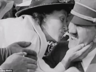 罕见镜头:美国女游客情不自禁强吻希特勒