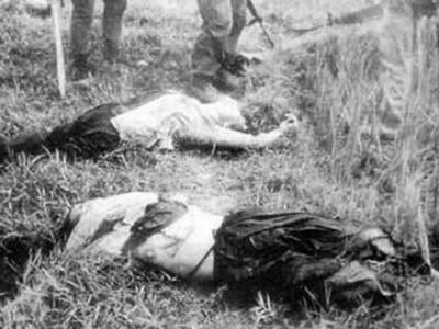 韩国部队在越战屠杀平民,地上躺着两名年轻女子的尸...