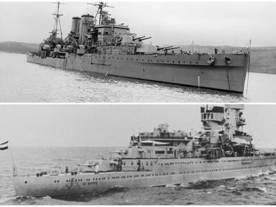 英国的埃克塞特号(上图)及荷兰的德·鲁特伊号(下图)残骸不翼而飞。 海底3...