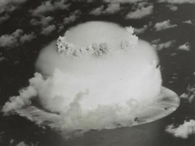 核试威力强大。 美军把环礁上的居民撤走。 核试扬起了巨大的蘑菇云。 军...