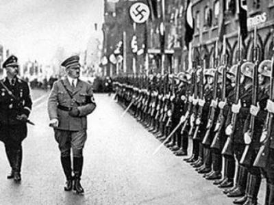 德国一出纪录片指纳粹德军在二战末期或已研发出原子弹。图为纳粹领袖希特勒(左二...