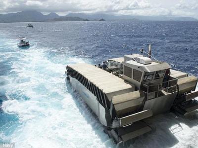 美国海军陆战队最新研制的“超级重型起重两栖车(Uhac)”,能够在水面上行驶时速达...