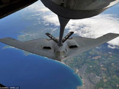 美国空军发布B-2隐身战略轰炸机在英国Cornish海岸上空空中加油的罕见照片 B-2...