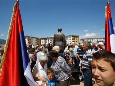 萨拉热窝为100年前刺杀奥匈帝国王储的塞尔维亚族青年普林西普树立塑像 (神秘的...
