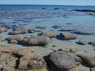 Stromatolites in Sharks Bay, Australia, one of the few places on Earth wher...
