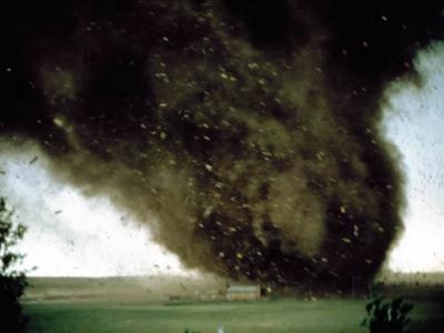 A tornado blasts through a mobile-home park near Cheyenne, Wyoming. Watchin...