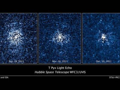 These three images taken by NASA's Hubble Space Telescope reveal a disk of ...