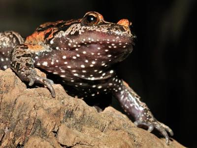 A frog belonging to the Latonia genus perches atop a rock. Israeli park ra...
