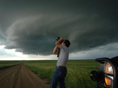 National Geographic explorer Tim Samaras watches storm clouds gather. Nati...