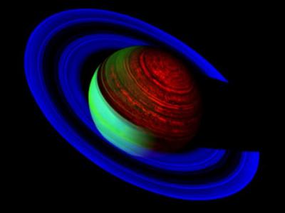 False-color mosaic of Saturn created from 25 images taken by Cassini's visu...