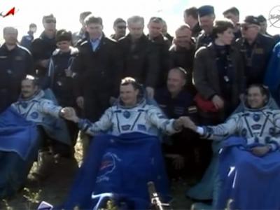 A Russian Soyuz spacecraft carrying a crew of three space travelers successfu...