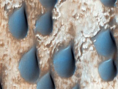 The dark features here look like raindrops on Mars, but are actually sand d...
