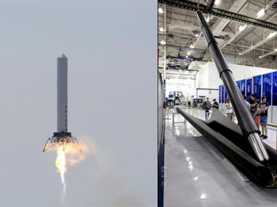 The SpaceX "Grasshopper" rocket hovers over McGregor, Texas, on April 19, 2...